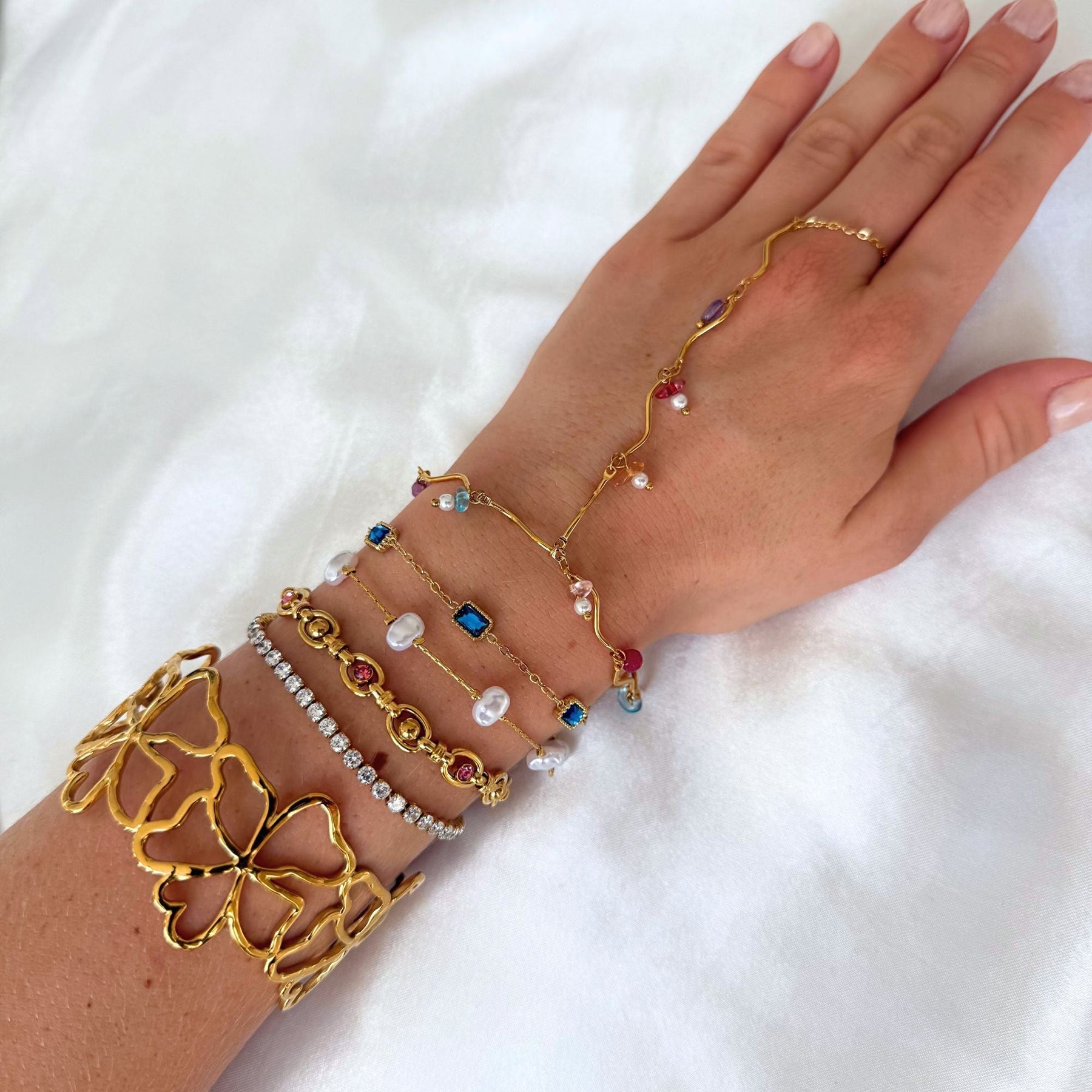 Graceful and luminous. The Elysse Link Bracelet embodies timeless luxury with a touch of modern allure. Its polished gold links and blush-pink crystal accents create a radiant harmony of elegance and strength — a statement of effortless sophistication for every occasion.