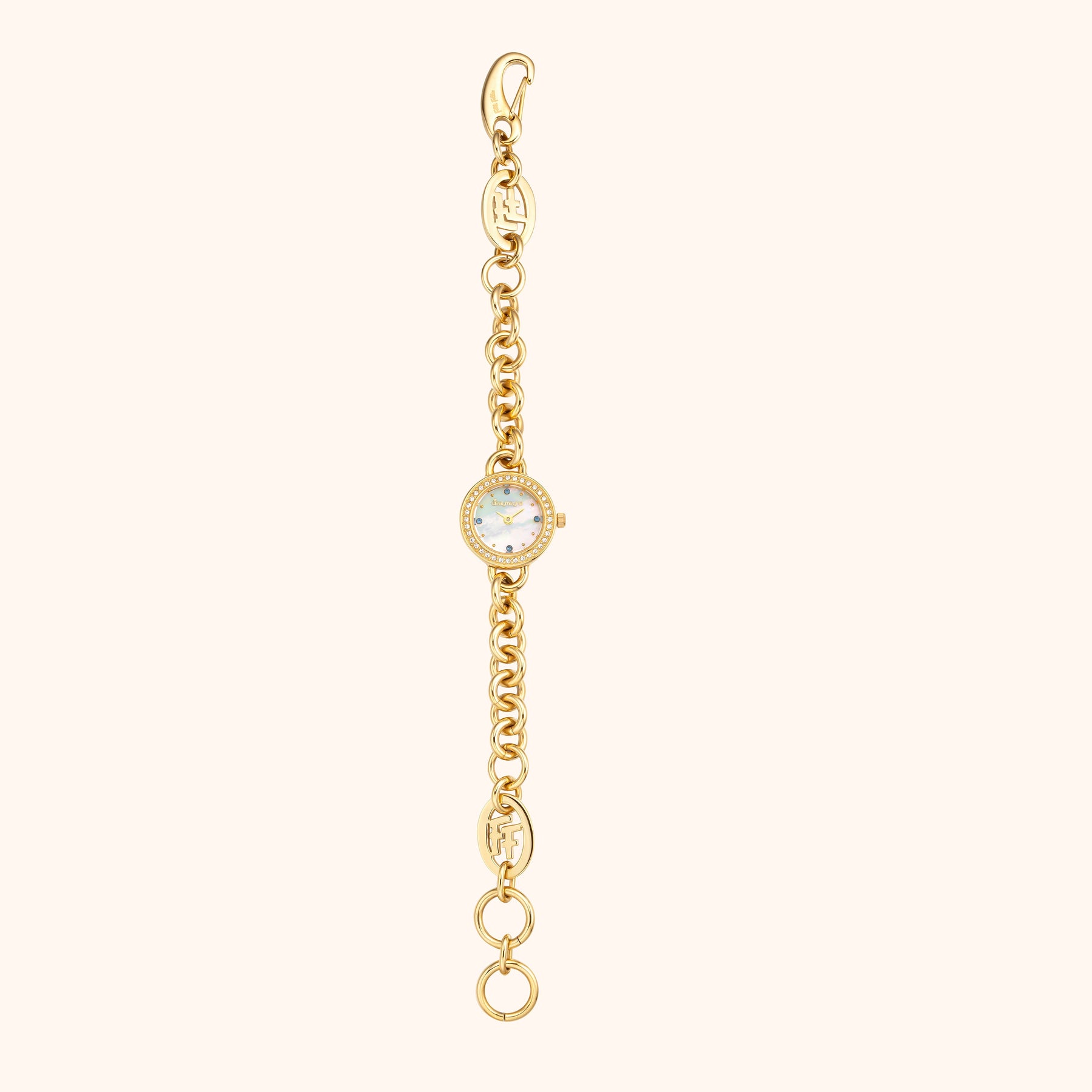 • Dial Color: White mother-of-pearl with gold accents